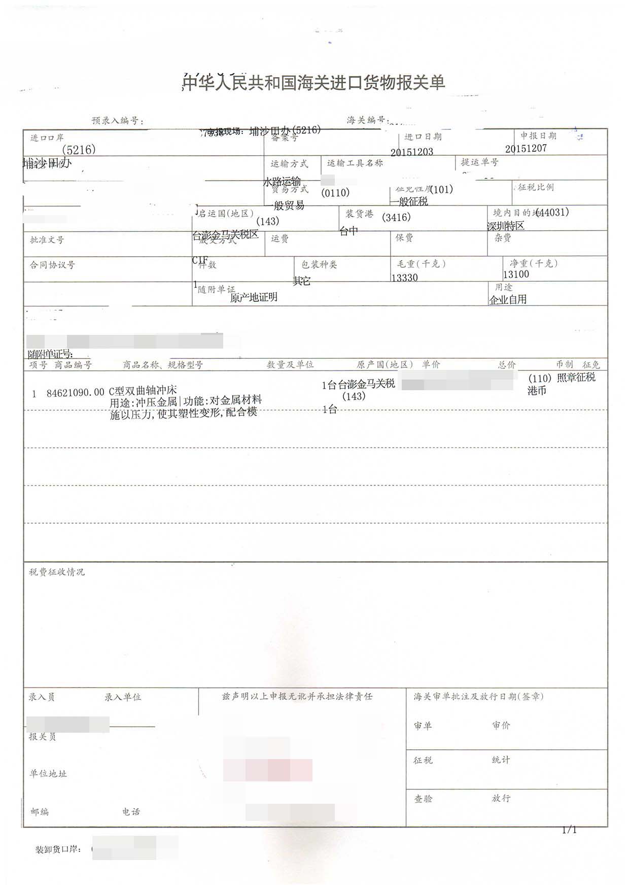 - 沖床進口報關手續及案例【建議收藏】