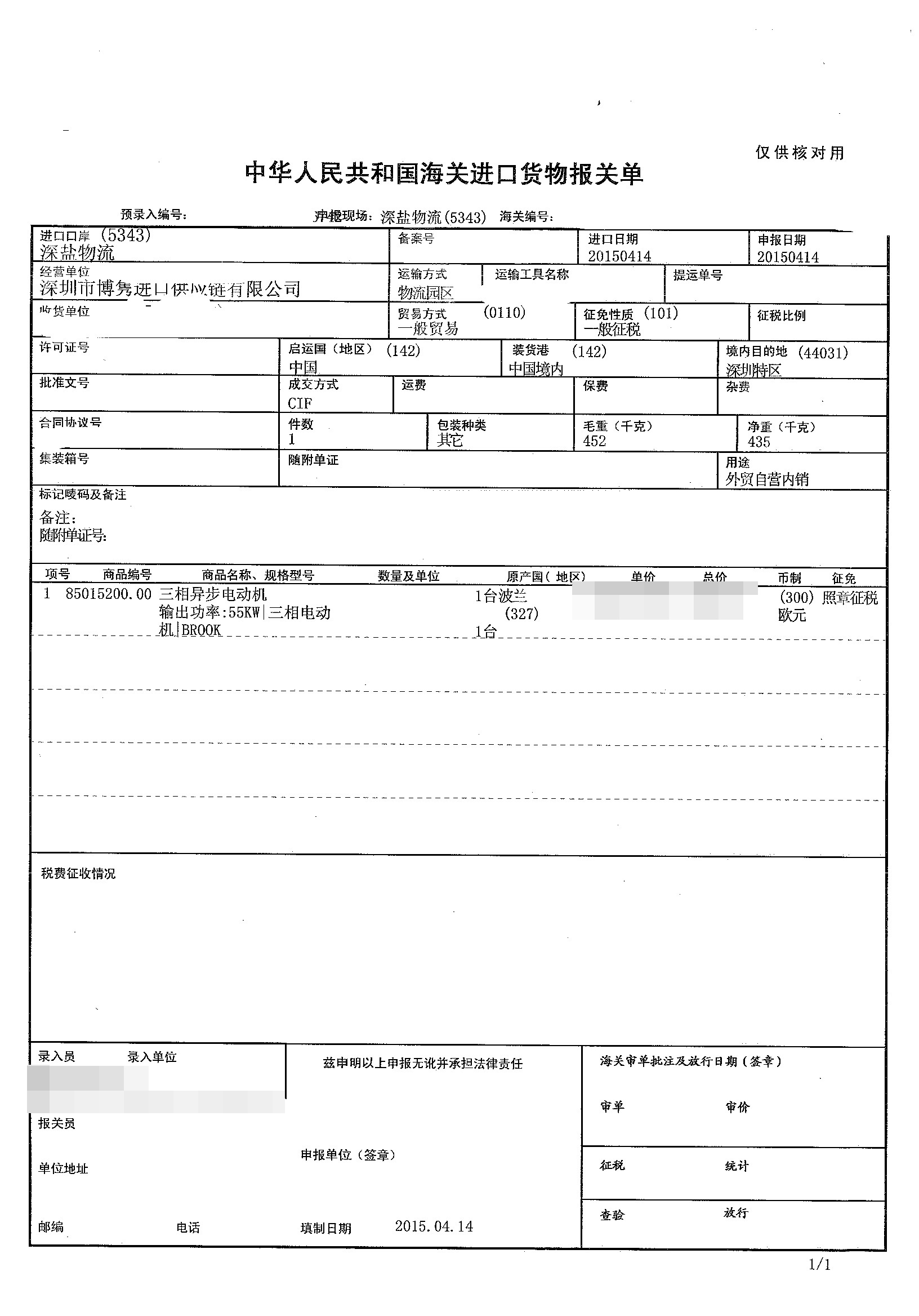 三、三相異步電動(dòng)機(jī)進(jìn)口報(bào)關(guān)案例展示