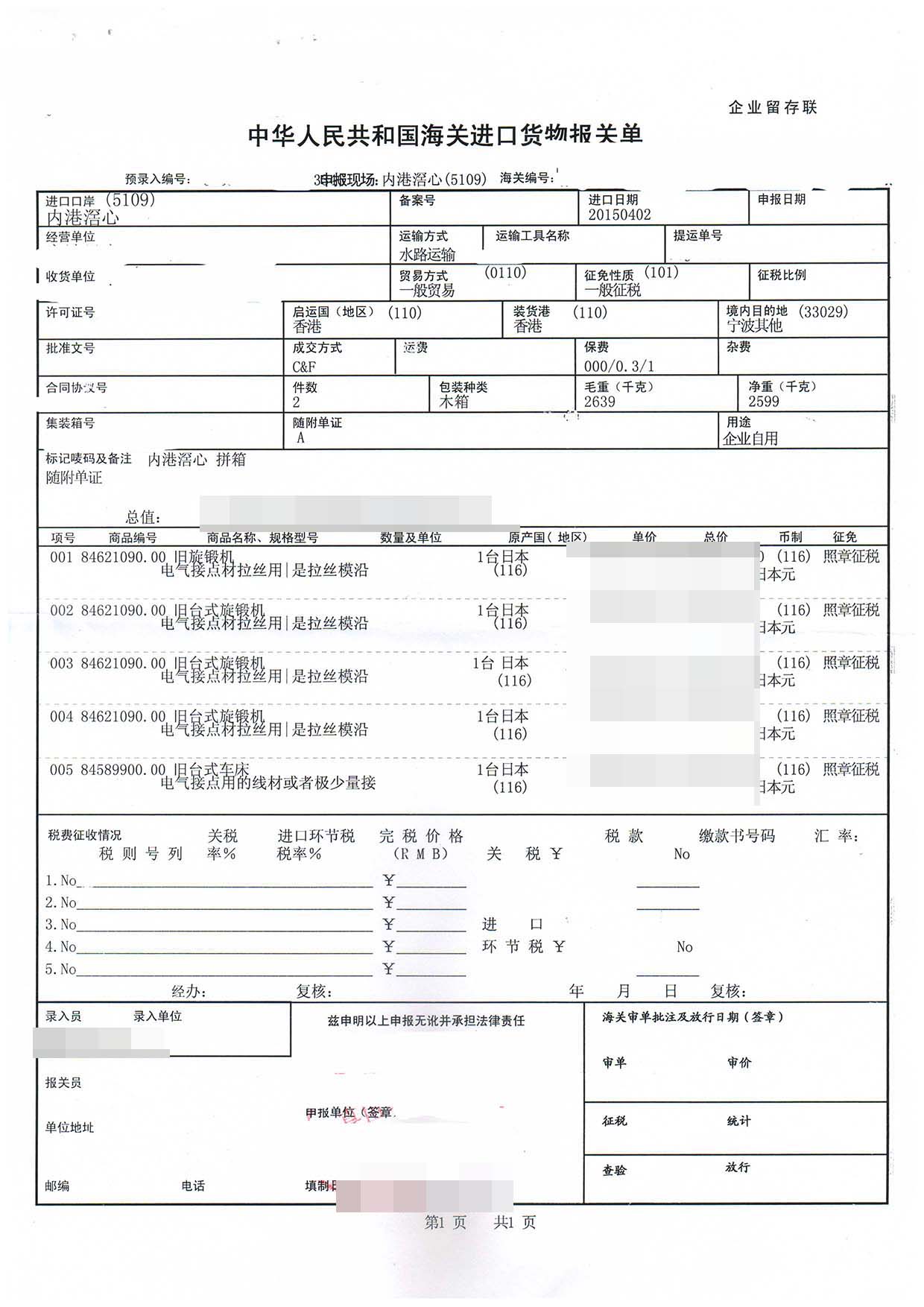 【文章標題】:舊旋鍛機進口報關手續及案例【進口知識】 http://www.xkgx.com.cn/lm7/76.html 轉載請注明出處