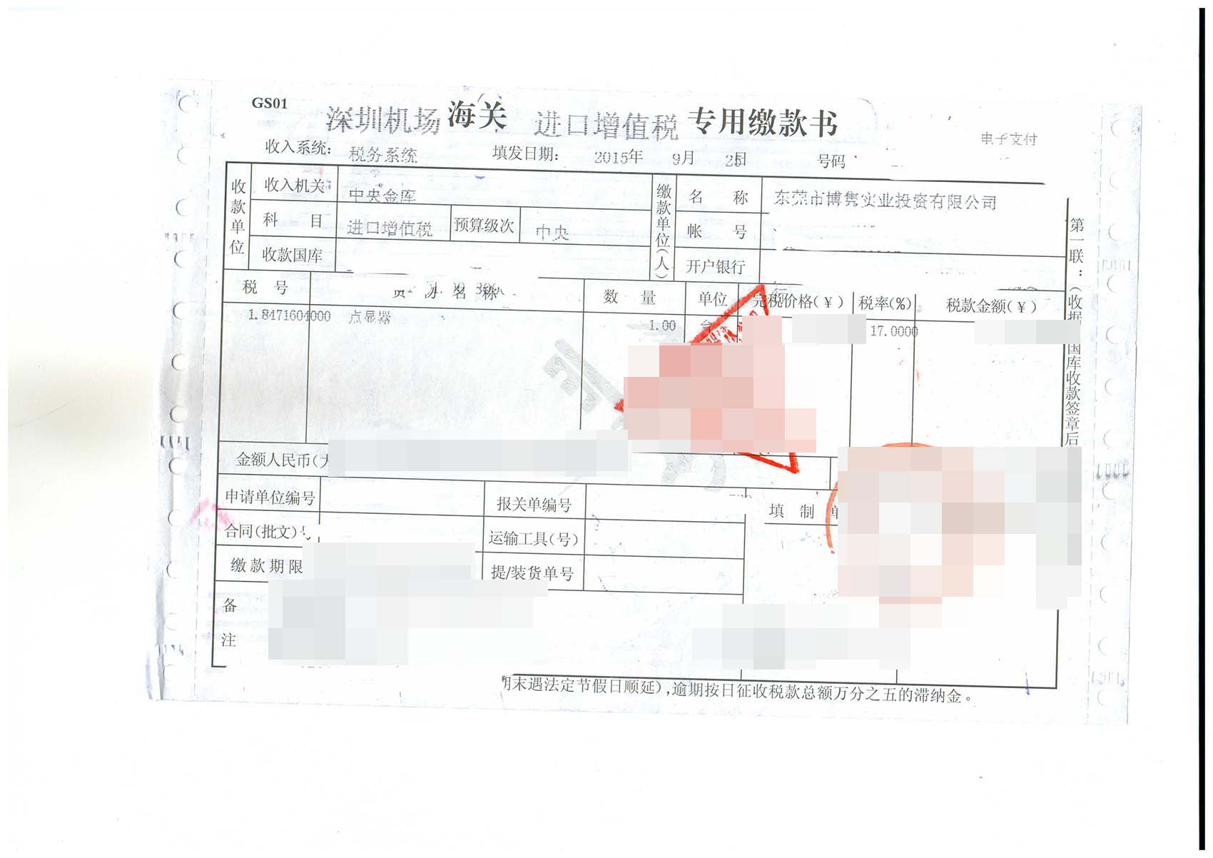 進口日期:20150918客戶:東莞市松山湖某產業發展有限公司