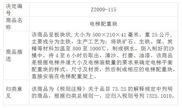 不論是卷揚(yáng)機(jī)驅(qū)動的強(qiáng)制驅(qū)動電梯,還是曳引機(jī)驅(qū)動的曳引驅(qū)動電梯,一般都會配有平衡(配重)塊,用以降低主電機(jī)的牽引力和功率,節(jié)省費用和能量。但不應(yīng)想當(dāng)然地將平衡塊按電梯零件歸入品目84.31,見73.25品目注釋及歸類決定Z2009-115: